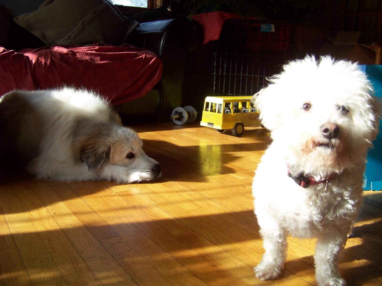 One year ago I was gifted a 2.5 year old border collie, Maggie. She came with some scary behaviors, and she went absolutely bonkers at people who came in the house. I popped her into her normally beloved crate with a bone. At first she screamed and smashed around inside the crate, even when I was shoving cheese in there. So that was, sadly, positive punishment (adding confinement), and also negative punishment ( freedom taken away ).