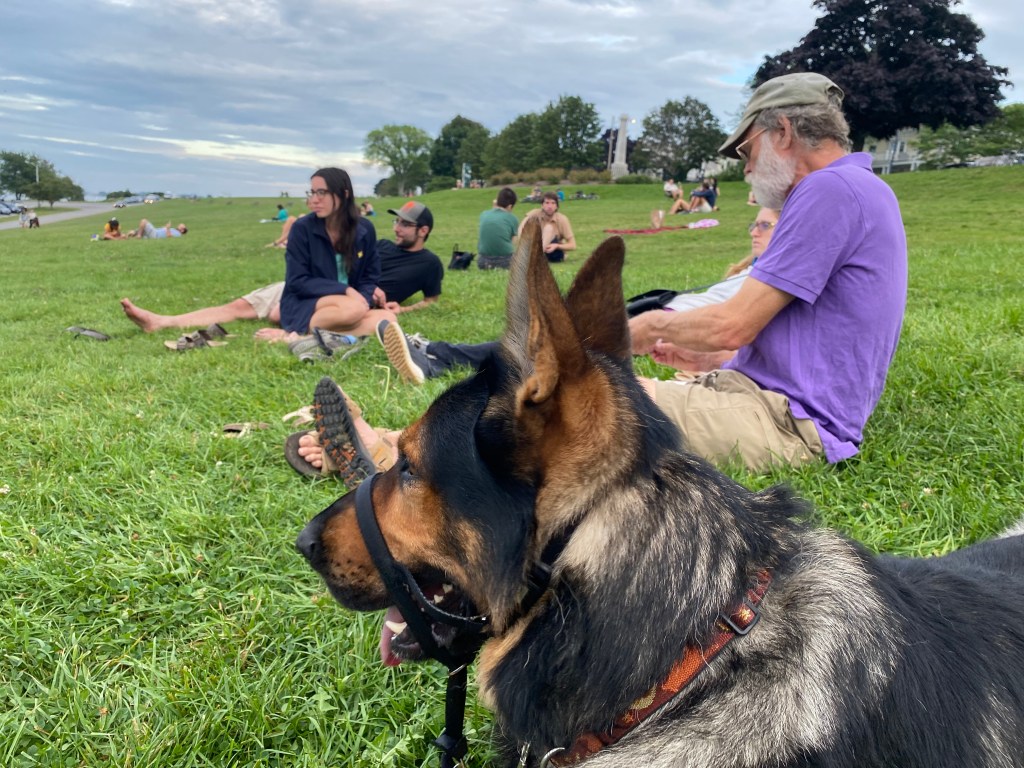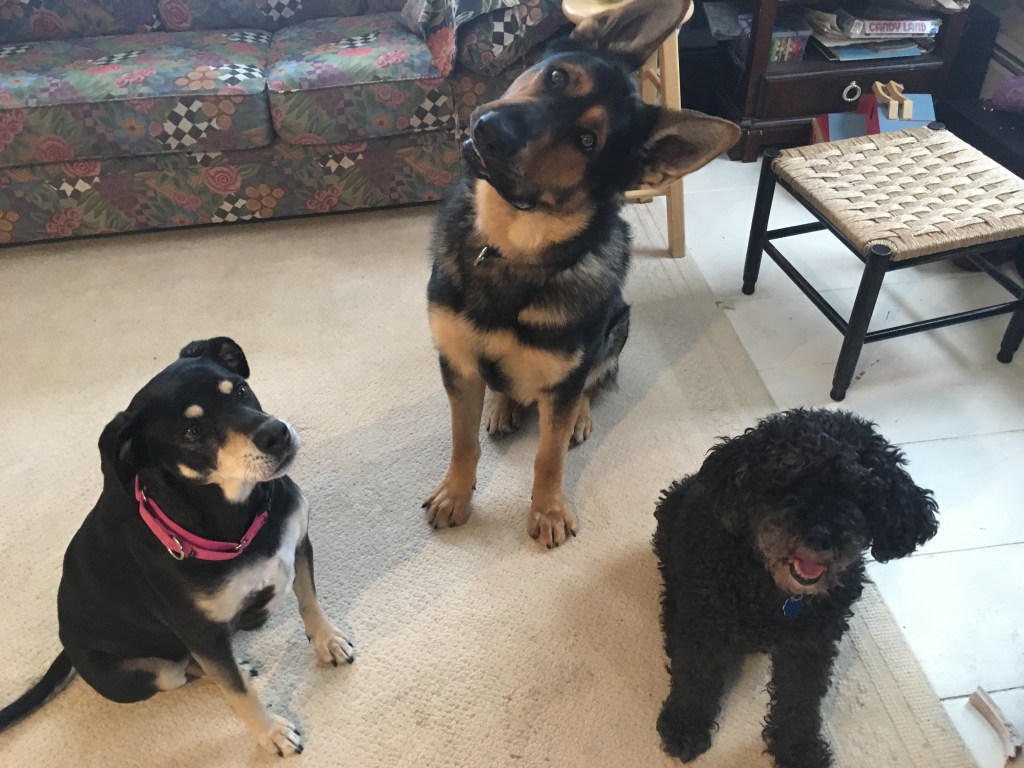 Consider a behavior I sometimes dislike: barking. I do require alert barks and so I put both “speak” and “ssh” on cue, using positive reinforcement (added food and attention). We practice and grow the response around distractions.